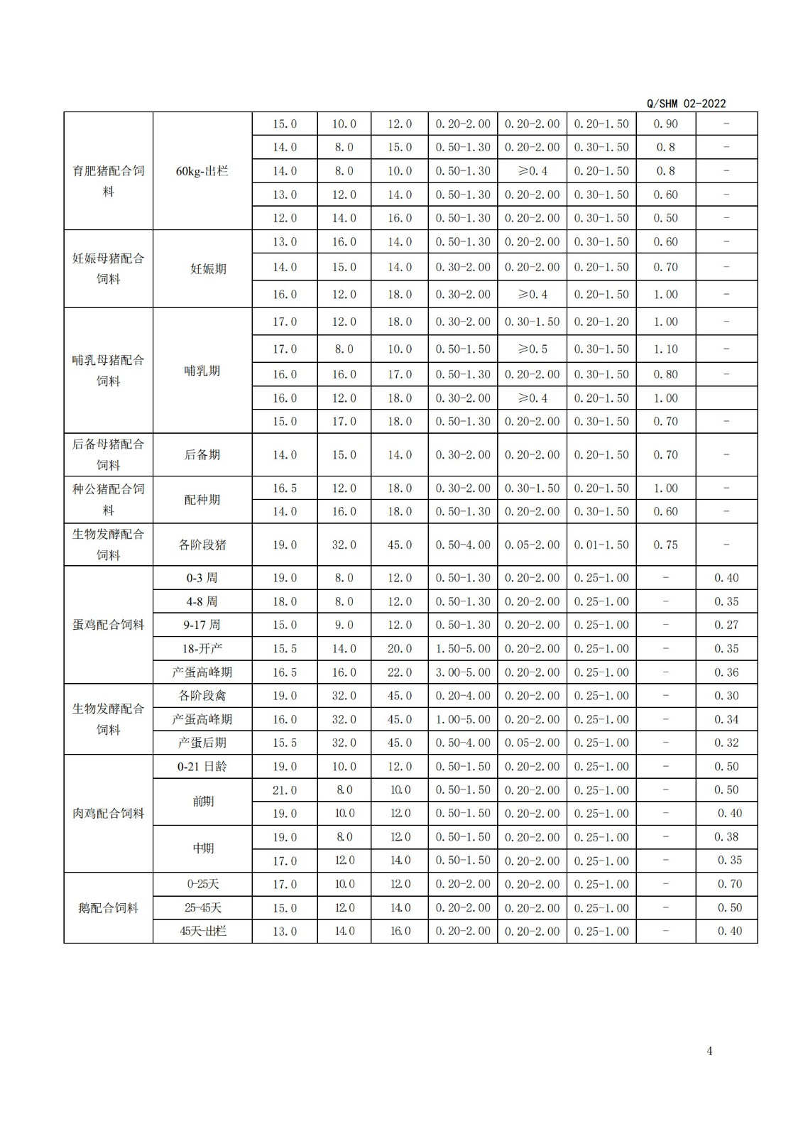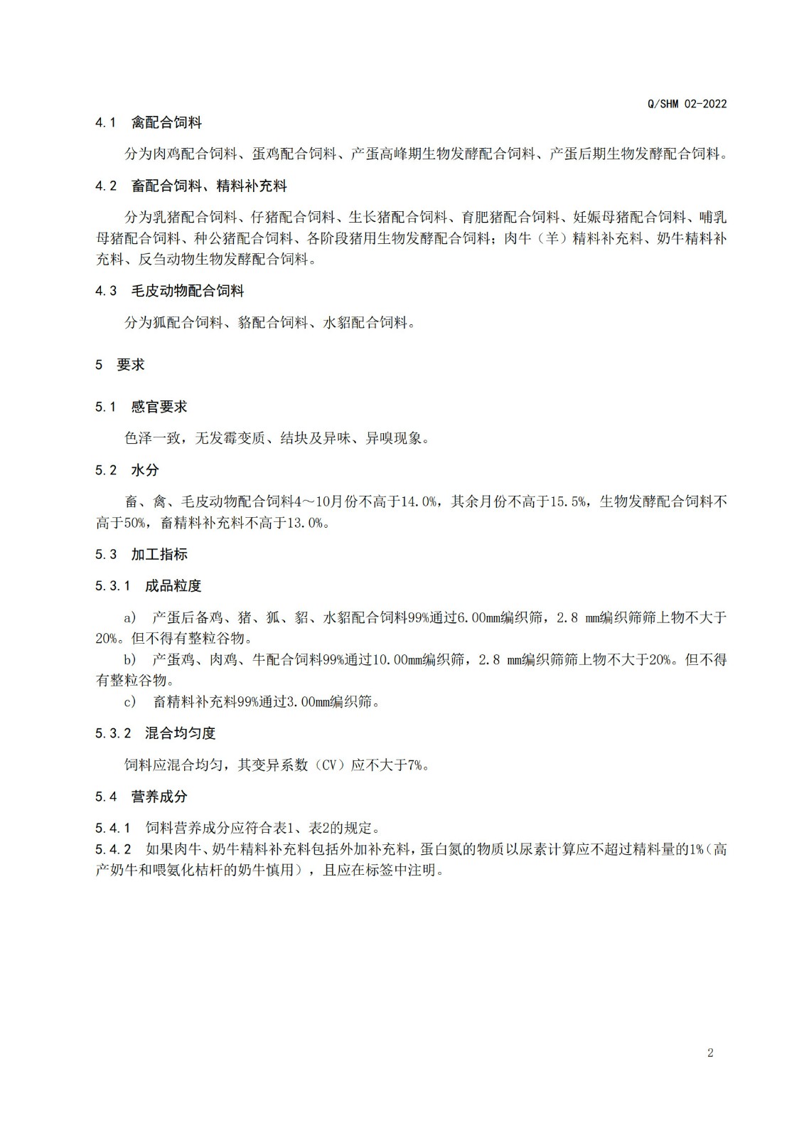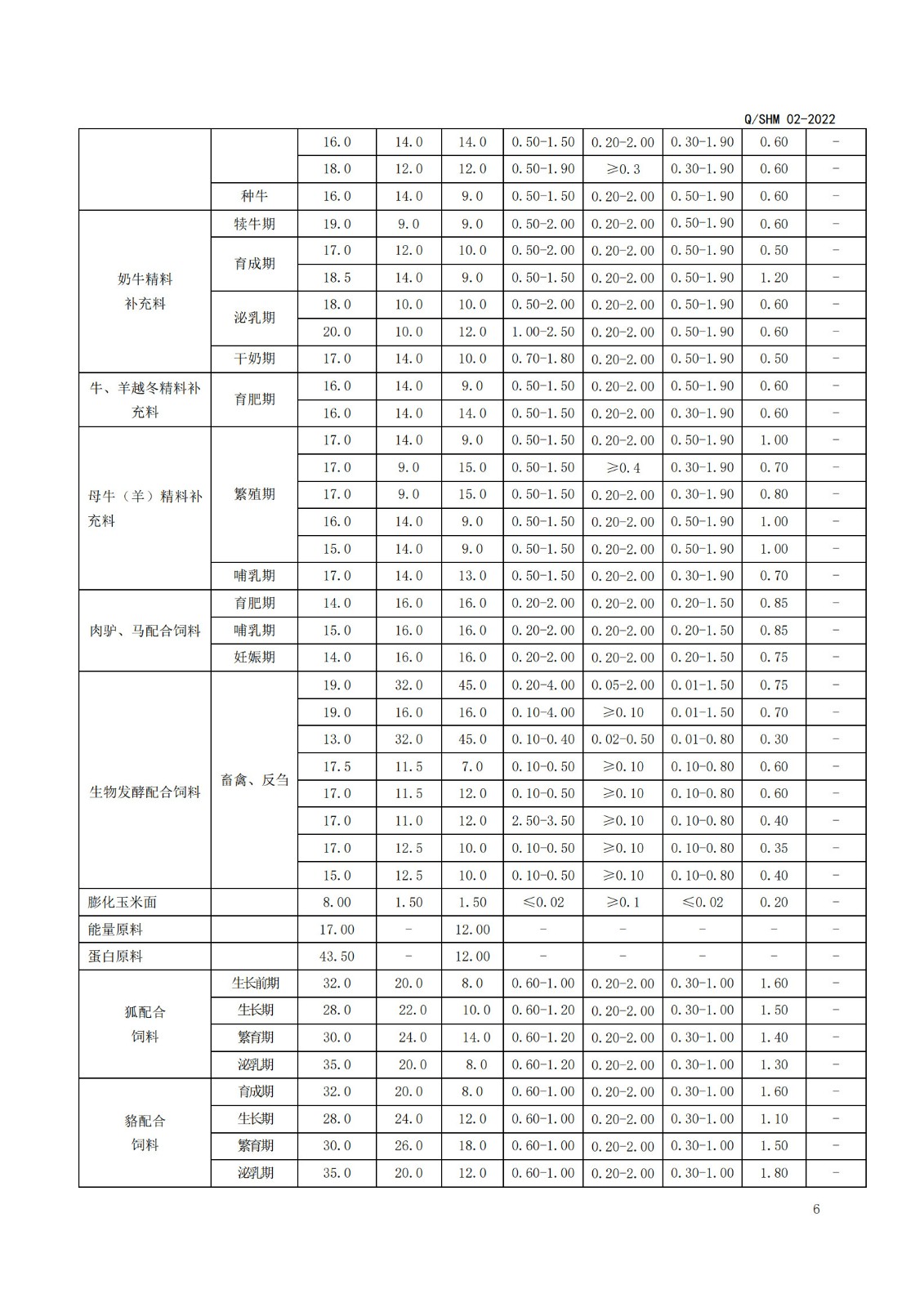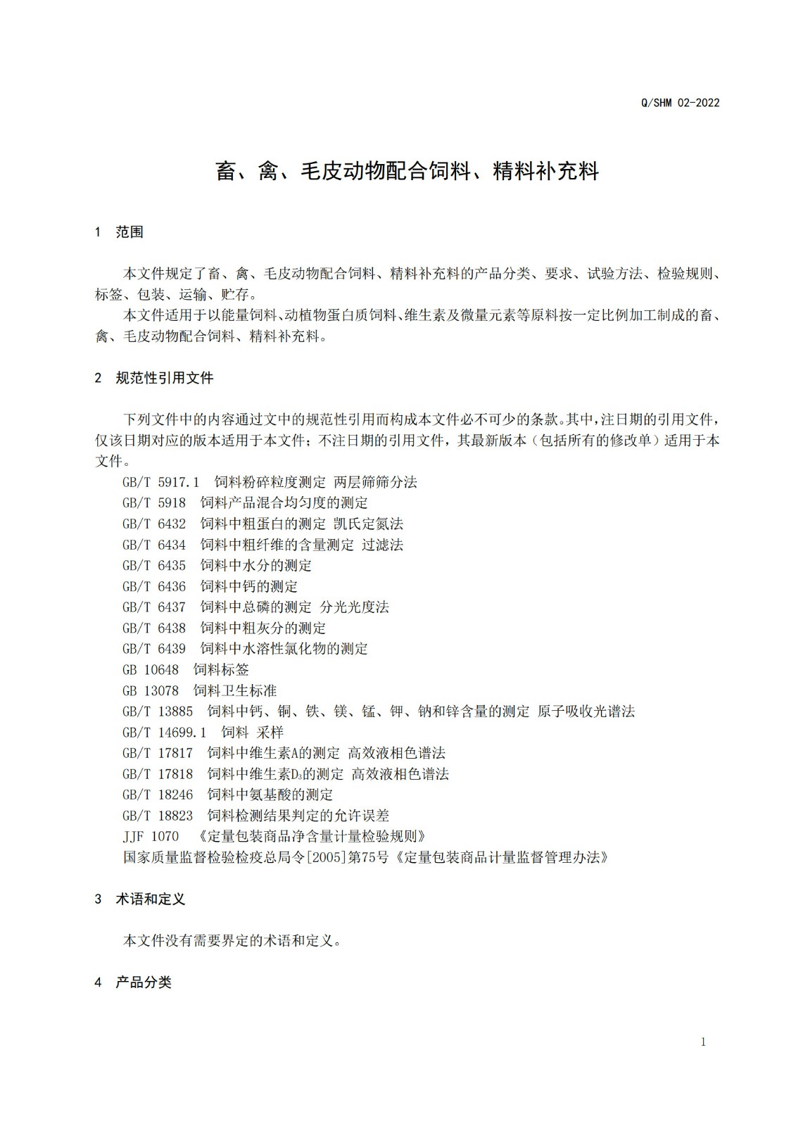 产品执行标准(畜、禽、毛皮动物配合饲料、精料补充料)