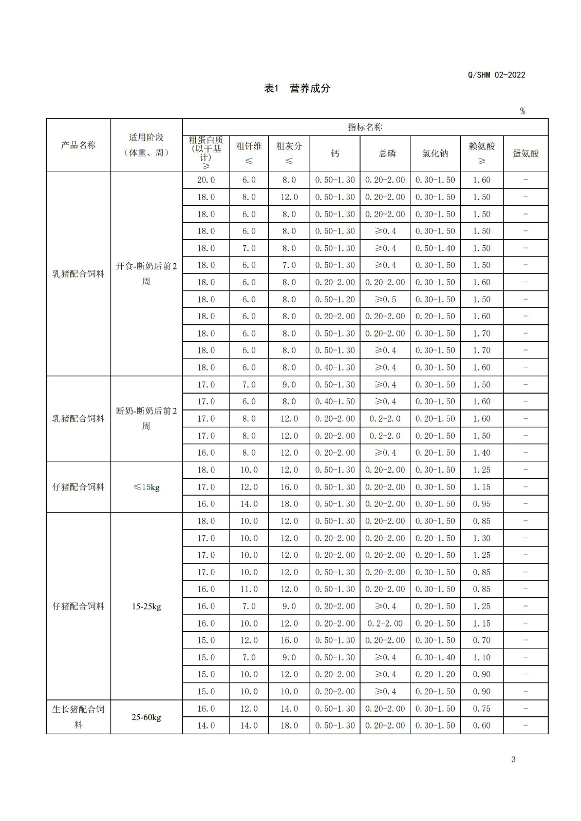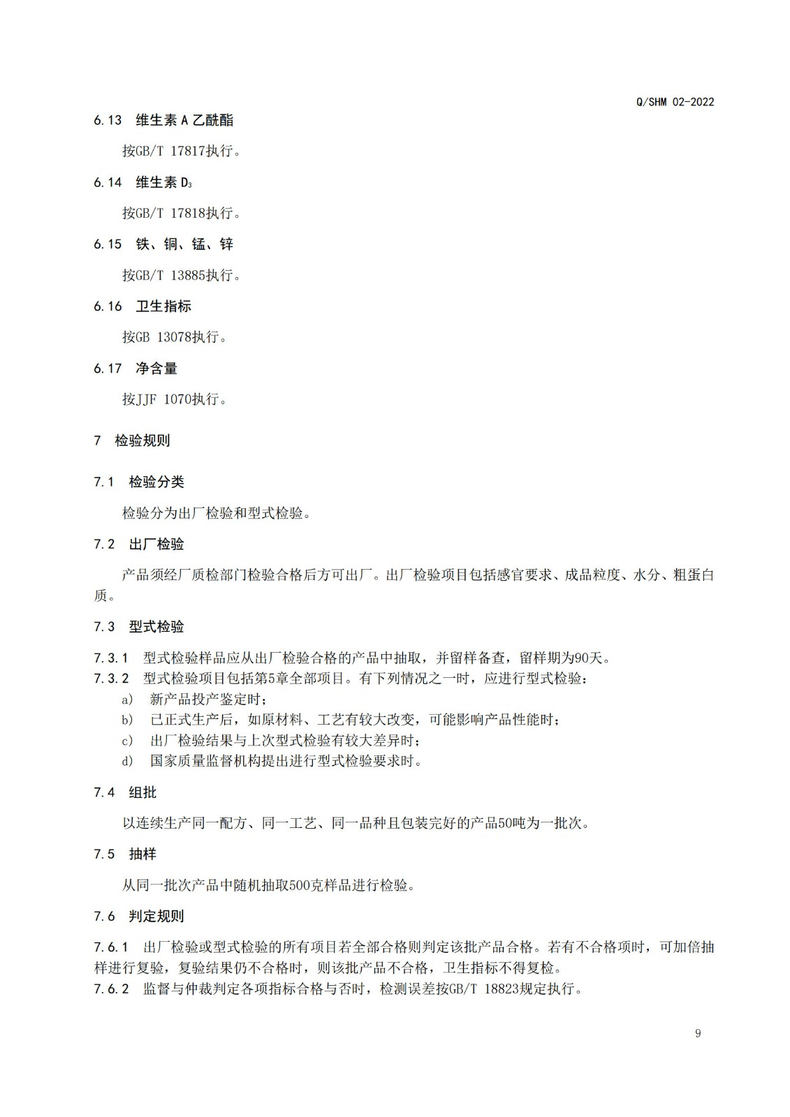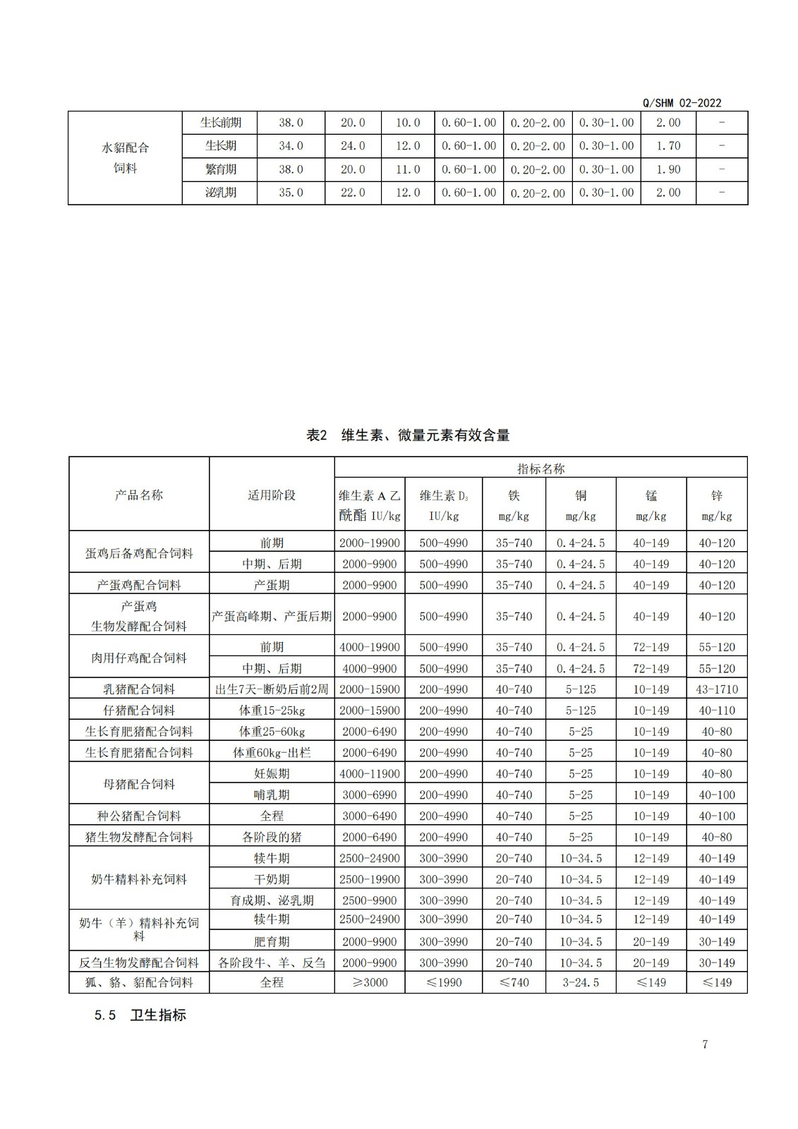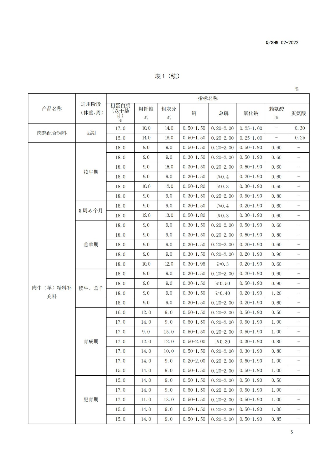 产品执行标准(畜、禽、毛皮动物配合饲料、精料补充料)